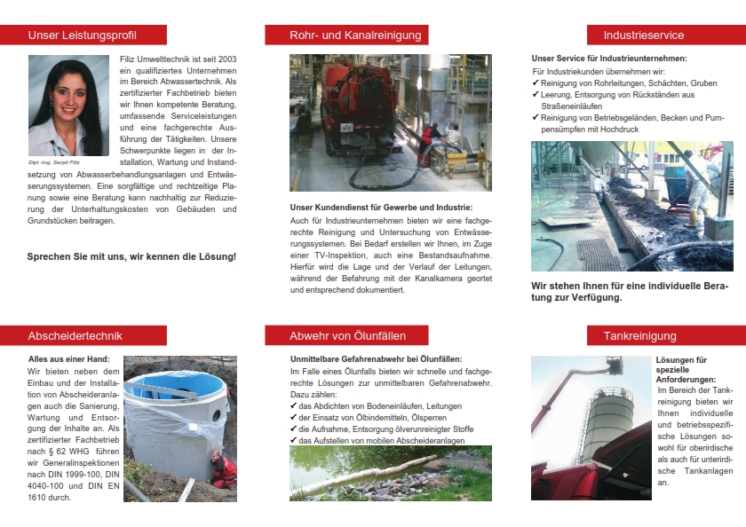 Filiz Umwelttechnik bietet Ihnen als zertifizierter Fachbetrieb ein breites Dienstleistungsspektrum